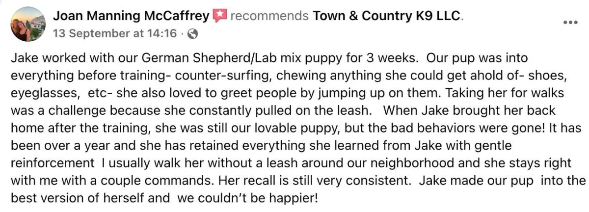 🐾 Next-Step Training Recommendations If we’re the right fit, you’ll know exactly what comes next to turn your dog into the well-behaved pet you’ve always wanted.